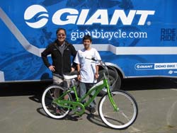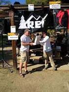 REI Novara System 9 winner Michael Glorieux Raffle winner with REI representative Jennifer Day