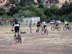 This excercise is to bank around the cones. Marla reminds people to keep the outside foot down.