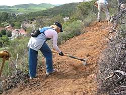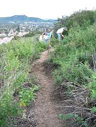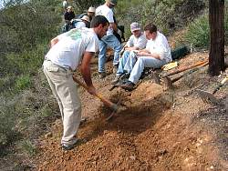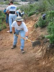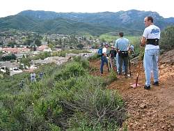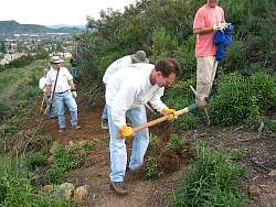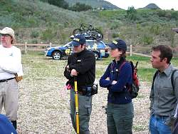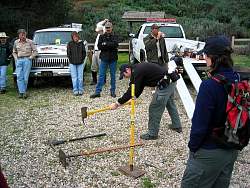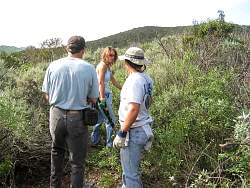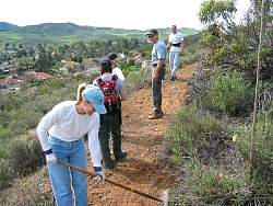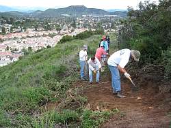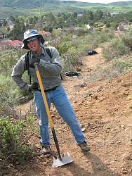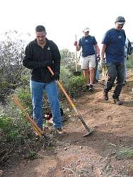 Nat and Rachel, IMBA trail care crew, look on. That's Rich from CORBA on the left and James on the right.