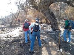 A group of trailworkers with the Santa Monica Mountains Trails Council trail crew getting ready to hit the dirt