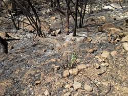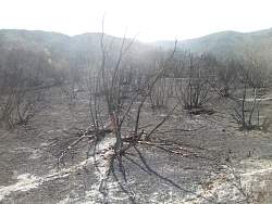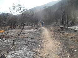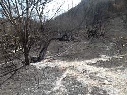 The bridge at the bottom of the blacktop hill has seen a little of the fire