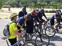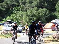 Riding through the camping area with the MBU ride leader at the front