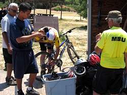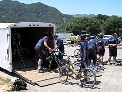 Helmets and gloves go in the bin while bikes get a quick wipe to remove dust and mud