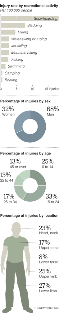 If it’s summer, it must be time for safety warnings about outdoor sports. So here is a surprise: measured by the rate of injury while participating, the most dangerous outdoor recreational activity by a wide margin is snowboarding, followed by sledding.