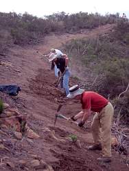 Hans is ridding the edge of the trail of shin-stabbing yucca plants