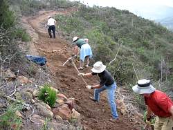 That's Hans, from CORBA and the OTB mountain bikers. COSCA ranger Bruce is approaching him