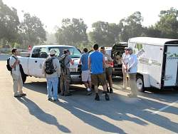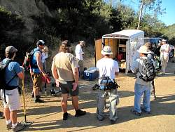Gathering at the oak tree. We'll work our way back down the trail from here.