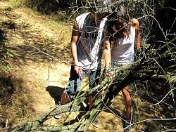 Trimmings lie on the trail before being moved off the trail and out of sight