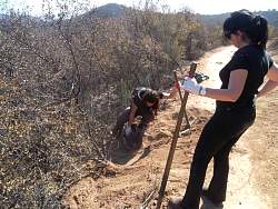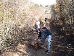 Removing a couple of very tenatious stumps near the bottom of the Space Mountain Singletrack.