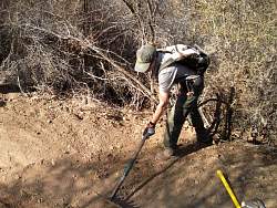 Cleaning the silt out of drainage nick that had been built two or three years ago.