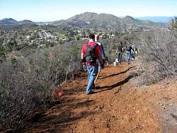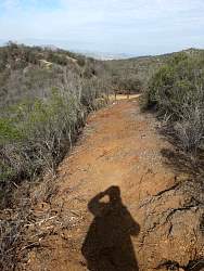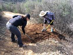 The route of the new trail has been cut through the caparral. The old, fall-line trail is to the left.