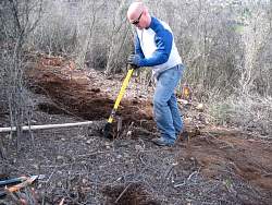 On the trail above the reroute, we cleaned out three drains that were clogged with dirt and built one new one.