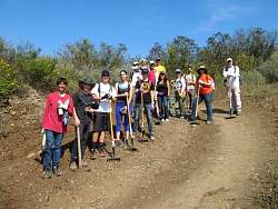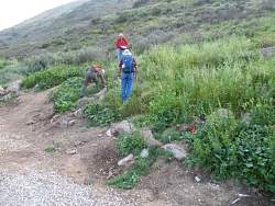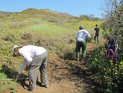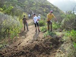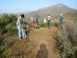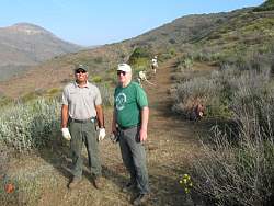Head Ranger Bruce with master Trail Crew Leader Jerry from the Santa Monica Mountains Trails Council. The new trail section can be seen behind them.