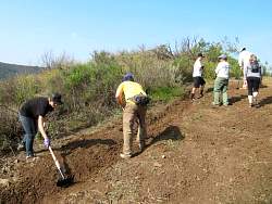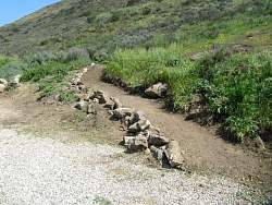 On the Lizard Rock Trail, building a new drain to prevent rainwater from flowing doen the chicane and making a big rut. This trench across the trail is only a small part of the whole drainage ditch!