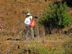 Carrying dirt from where it was dug out to make the ramps down to where it will be used to fill in ruts