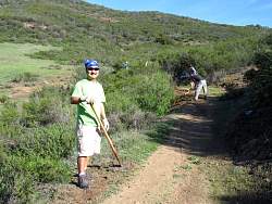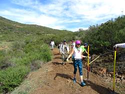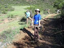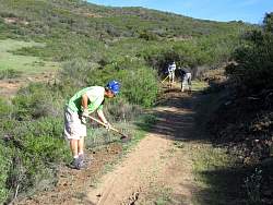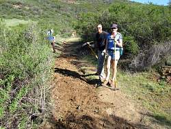 This group is working to build a drainage to divert water off the trail so it doesn't form a rut down the middle.