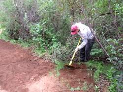You can see how rutted and rought the trail is above where we're working. Unfortunately we didn't have enough time and people to fix the whole trail. As it was, we worked on about 1500'!